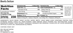 Ingredients: wheat gluten, black beans, beets, water, mushroom powder, vegetable oil, liquid aminos, salt, monosodium glutamate, onion powder, garlic powder, apple cider vinegar