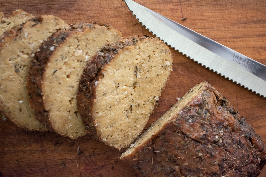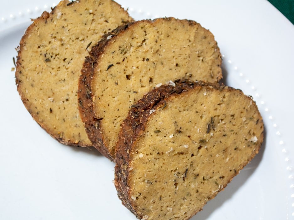 A succulent herbaceous turkey-style seitan roast, perfect for your Thanksgiving meal!